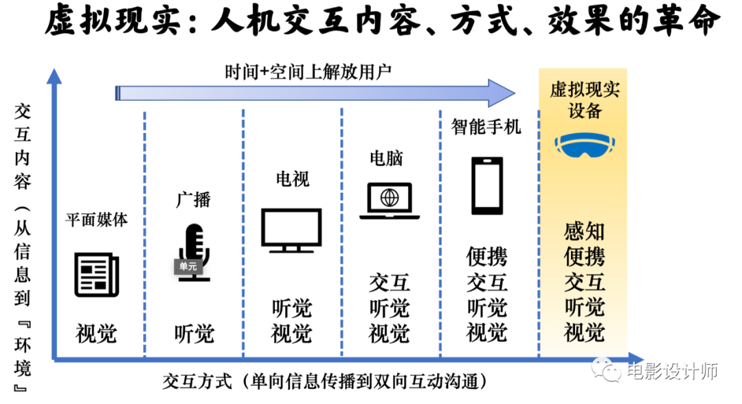 从平面媒体到广播,电视,电脑,智能手机再到现在的虚拟现实设备。科技在时间和空间上不断解放人类。